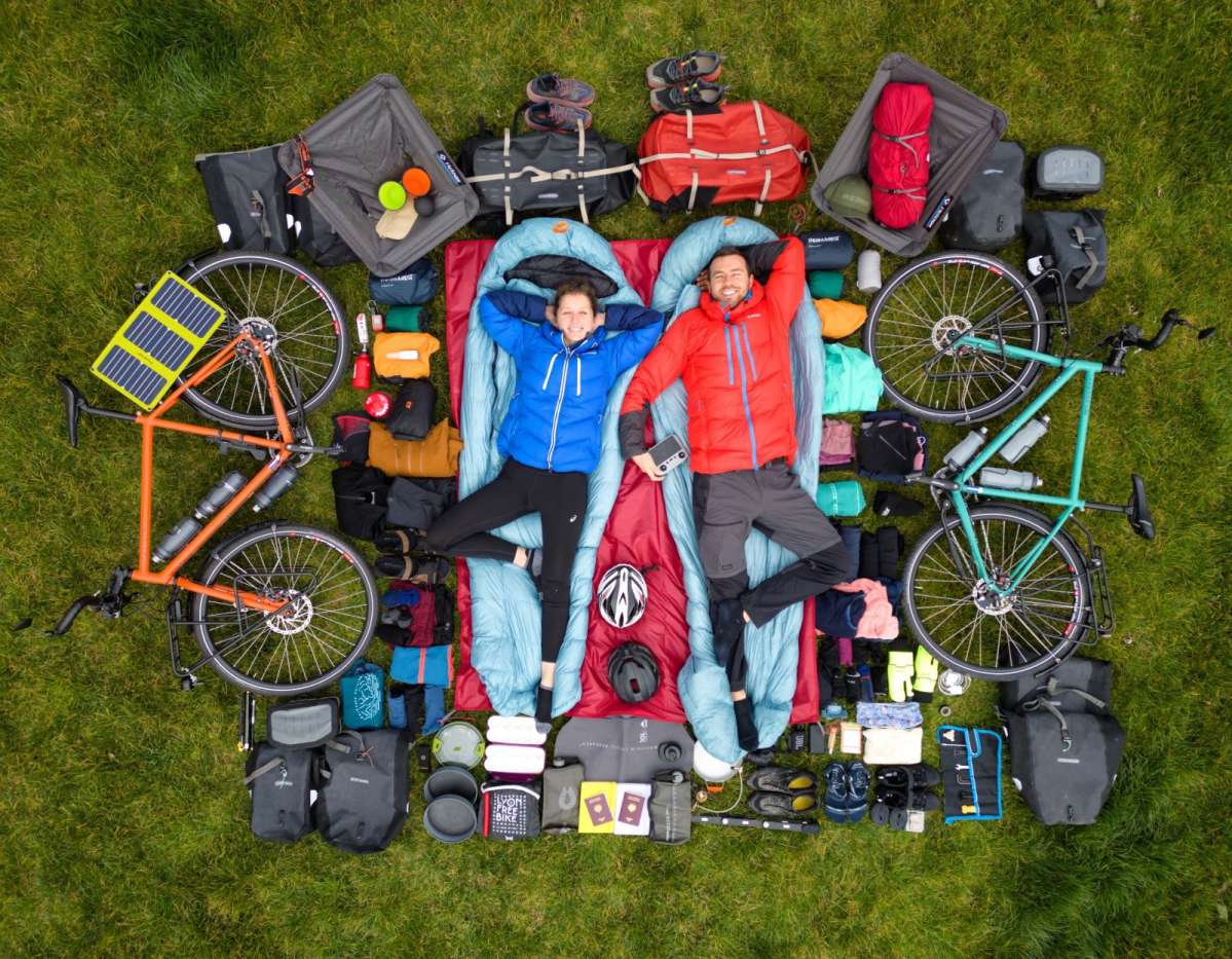 “The photo before departure with all our equipment for a year-long journey. We took this picture with our drone.”
