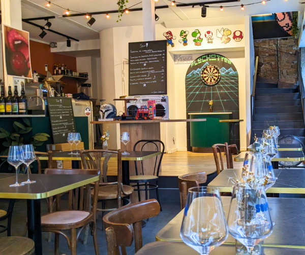 Un verre de vin dans une main, une manette de console dans l’autre, aussi étonnant que cela paraisse, c’est le combo qu’on adore ! Pour cela, direction Soif!, dans les Pentes de la Croix-Rousse. Ouvert en juillet dernier par Lola, Arthur et Louis, ce bar invite à la plus improbable des rencontres : des vins et du rétrogaming, pour assister à la naissance d’une ambiance résolument fun, terre de découvertes. Ici, pas d’aprioris sur le vin, on se laisse surprendre au rythme des recommandations du gérant, Arthur, qui propose une sélection de breuvages à partir de quelques indices distillés sur nos goûts et envies en matière de piance. Derrière le bar, 280 références de vins, à 70% vins bio et nature, 8 bières pression, moulte chartreuses et autres soft.