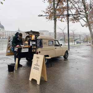 For the past five years, this barista has been bringing mobile specialty coffees to the people of Lyon. While he started out with just a delivery tricycle, the concept now includes a fantastic vintage Renault 4L van. His best-selling product is the marocchino (espresso, milk foam, chocolate) and pistachio espresso.