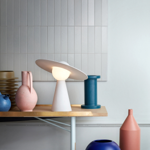 Bring Saturn into your living room with the table lamp ‘Moebe’, made with raw (non-enamelled) ceramic. Its lampshade pivots with just a touch to direct the light wherever you fancy.