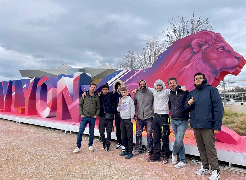 Plus exactement pour la sculpture ONLYLYON deuxième version. Créée en 2010, la structure est implantée depuis 2015 à l’entrée sud de la Lyon, au pied du musée des Confluences, après avoir voyagé entre le parc de la Tête d’Or, le Vieux-Lyon et le cœur de la Presqu’île. Emblème fort du territoire, elle a été entièrement customisée par des jeunes en situation de handicap de la fondation Ove, sous la direction de l’artiste lyonnais Kalouf et de l’Atelier Anamorphose, organisation hybride regroupant une association et une entreprise à mission sociale. Un projet d’insertion et d’inclusion qui redonne joie et couleurs pop à ce petit coin de Lyon. Ça promet sur les selfies !