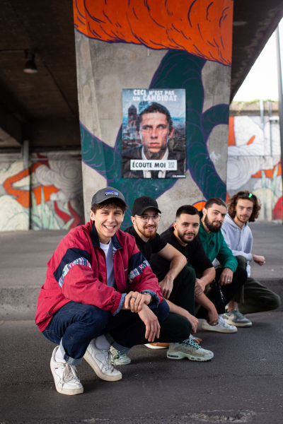 Before the presidential elections, there were posters everywhere. Alexandre (Editor’s note: surname ‘Mameli’, the director) and I felt that it was kind of absurd to see these politicians with make-up and staging like us, i.e. artists, when they’re doing politics. The stakes involved in running a country and selling music aren’t the same. We had the idea of turning things around by using the same means of communication as them (Editor’s note: the release was supported by a flyposting campaign).