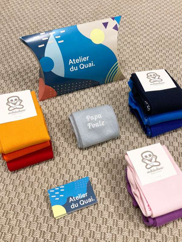 L’Atelier du Quai vous propose des chaussettes à personnaliser en impression ou en broderie. Après avoir soigneusement sélectionné pour vous des chaussettes de fabrication 100% française de chez Archiduchesse, vous choisissez l’imprimé ou la broderie.
