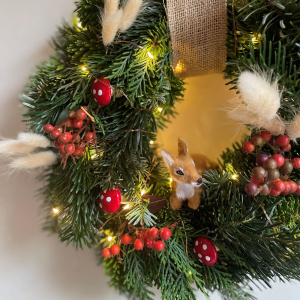 Pour un esprit encore plus festif, vous pouvez y placer quelques guirlandes lumineuses. Cerise sur le gâteau : l'eucalyptus sent divinement bon.