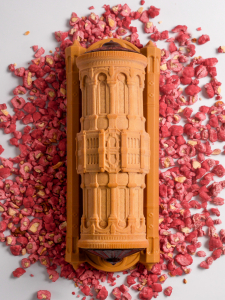 Lauréat de la Praline d’Or au Mondial de la Praline pour sa tarte, le chef pâtissier Thomas Dura propose une gamme gourmande de bûches de Noël dans ses deux boutiques à Écully et L’Arbresle. Parmi 7 recettes délicates de la collection Douceurs Lyonnaises, aussi bien chocolatées que fruitées, c'est la bûche Fourvière qui nous a le plus surpris. Particulièrement sculpturale, elle représente un pan de la basilique, avec détails. A l'intérieur, un financier amande, une marmelade pamplemousse-poivre Timut, un crémeux praline rose-pamplemousse, une mousse d’amandes torréfiées et une coque chocolat blond. Le tout posé sur tablette chocolat blond fourrée Bûche Mont Blanc praliné praline rose.