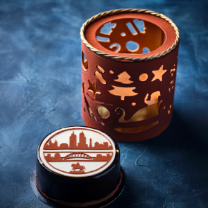 Pour les fêtes, le chef pâtissier Benoît Charvet du restaurant Paul Bocuse a imaginé une bûche en édition limitée : Illumination, hommage aux lumignons de la Fête des Lumières. Sous une élégante coque en chocolat, un mets plein de contrastes, rencontre des notes acidulées des agrumes et la profondeur du chocolat. Elle se compose d’un sablé et croustillant, de caramel aux éclats de noisette, d’un biscuit madeleine aux agrumes, d’un confit de mandarine Corse au citron vert, d’une marmelade d’orange sanguine et kumquat ainsi que d’un crémeux et crème légère au chocolat noir du Guatemala.