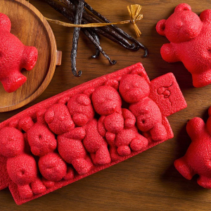 Si vous avez grandi avec le conte Boucle d'or et les Trois Ours, voici une bûche qui devrait vous faire retomber en enfance. Cette recette, signée Maison Sève, réunit la douceur de la vanille avec la légère acidité de la framboise, sous la délicate apparence d'ourson, pour sa version individuelle, et de famille d'ours pour son grand format.